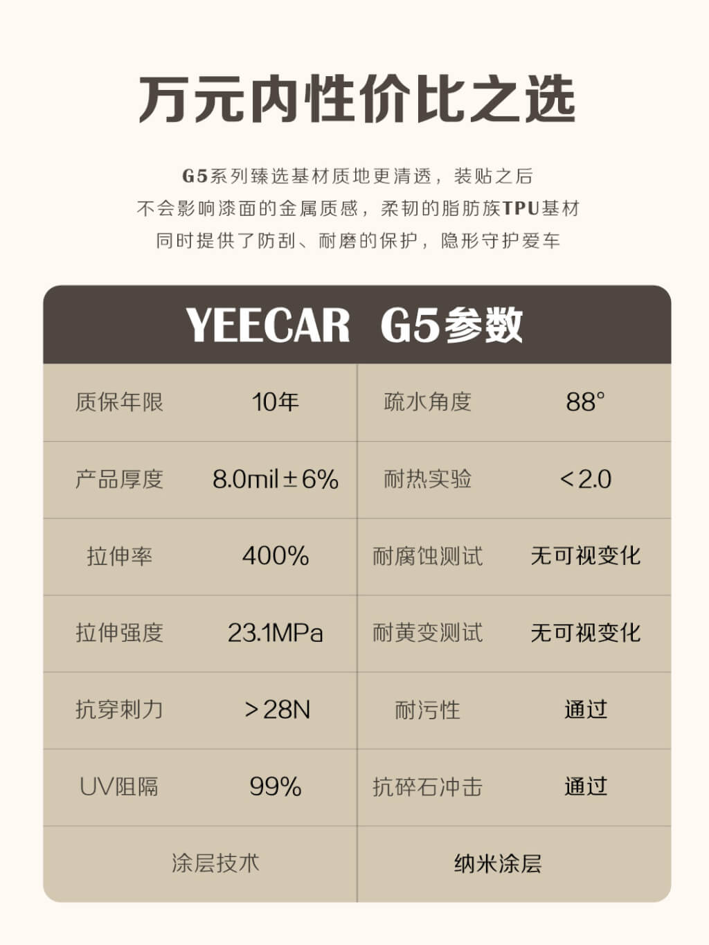 YEECAR汽车漆面保护膜G5 隐形车衣
