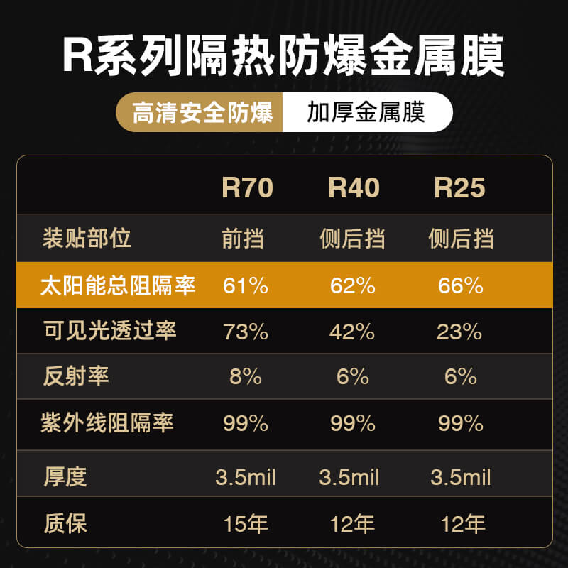 YEECAR玻璃膜高隔热太阳膜汽车贴膜金属隔热膜R70黄金搭配