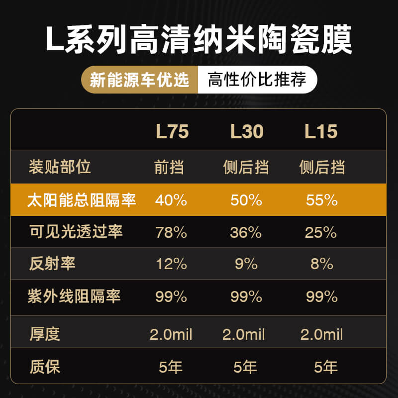 YEECAR艺卡 汽车隔热玻璃膜 L75车窗膜汽车贴膜