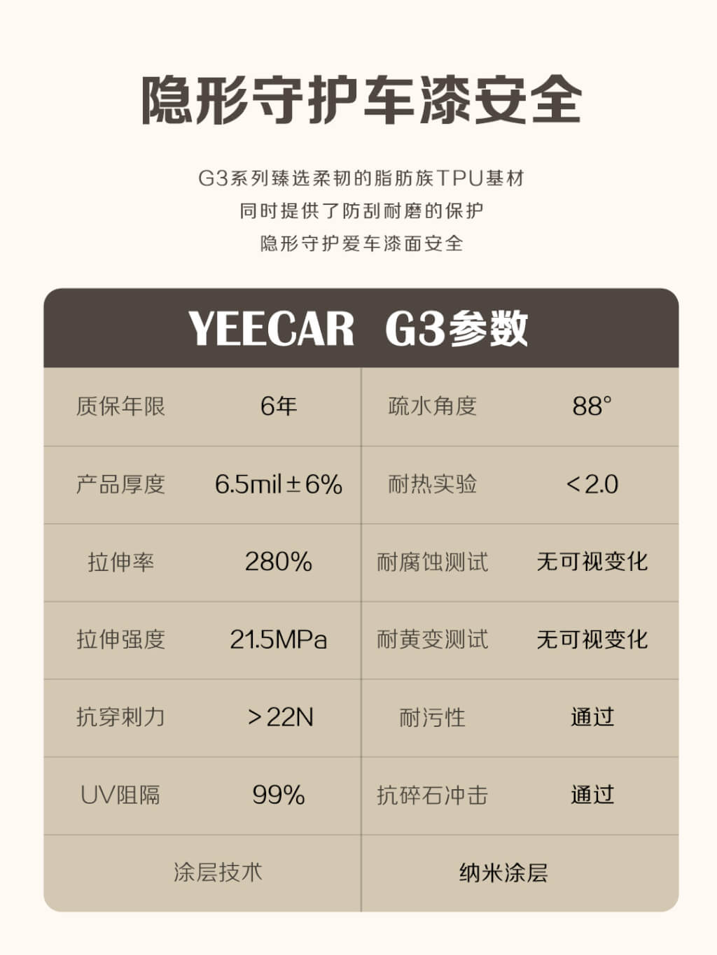 YEECAR汽车漆面保护膜G3 PLUS隐形车衣