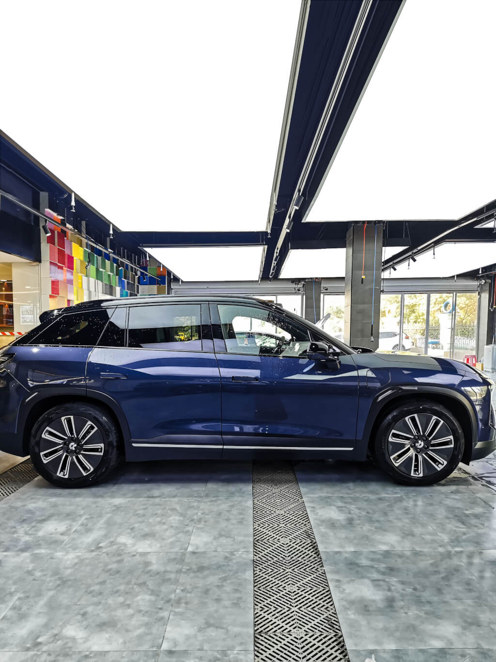 蔚来ES7 秉持着蔚来汽车一贯的高品质与科技感,简洁流畅却不失力量感的车身线条,勾勒出一种极具未来感的造型轮廓,大面积的高端材质以及先进的智能座舱系统,为车主营造一种豪华舒适的驾乘环境。YEECAR隐形车衣G6 凭借精湛的工艺与优质的材料,在施工过程中与蔚来 ES7 的车身实现了近乎完美的贴合。