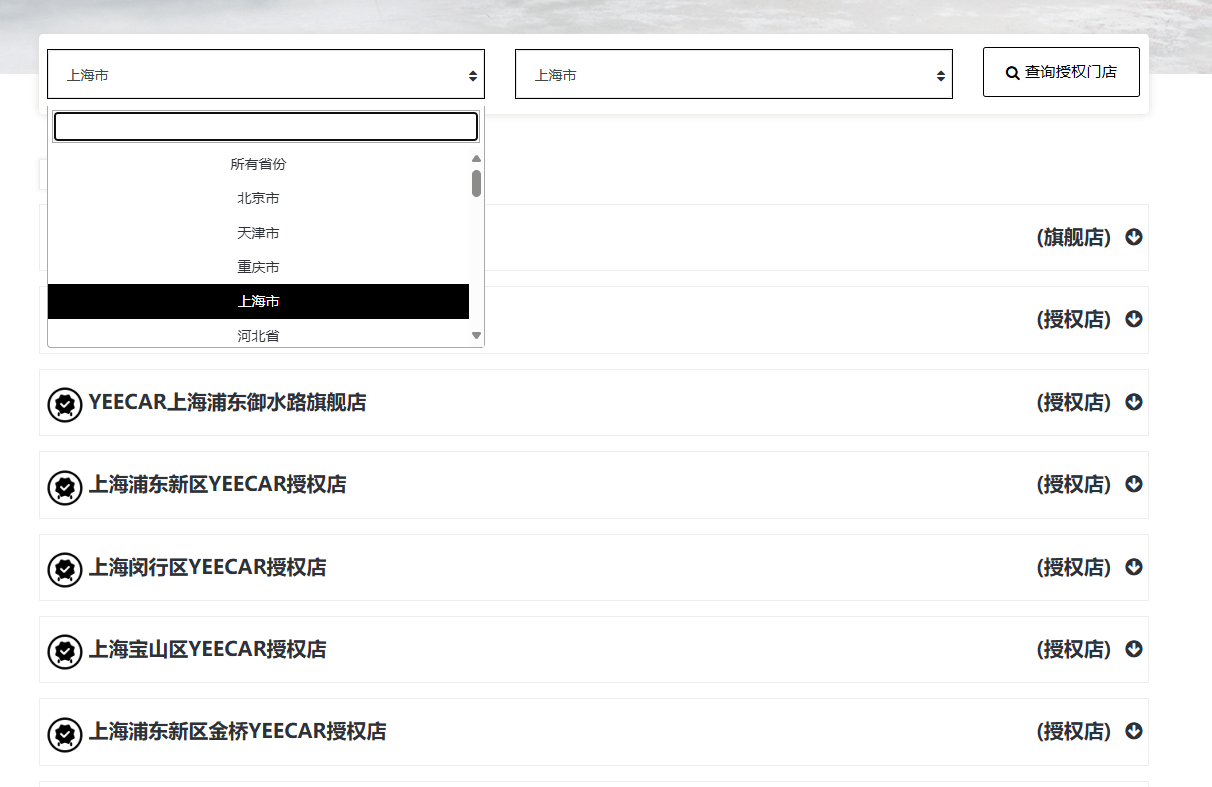 当然不只是上海有我们的YEECAR官方授权门店,也可以自行到官方进行查询,上海YEECAR官方授权门店地址查询链接:https://www.yeecar.com.cn/agent_query/23/26
