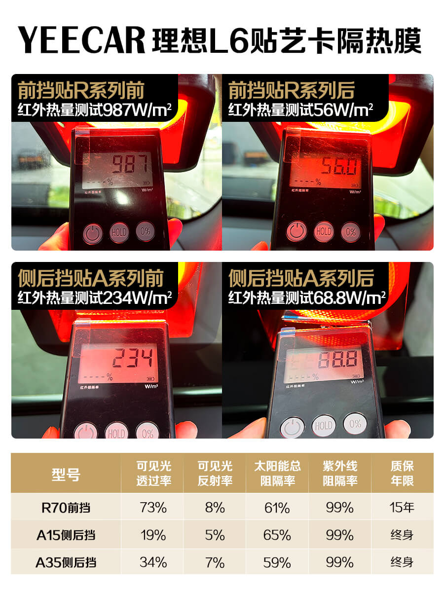 理想L6 施工YEECAR窗膜R70+A15+A35施工过程:
