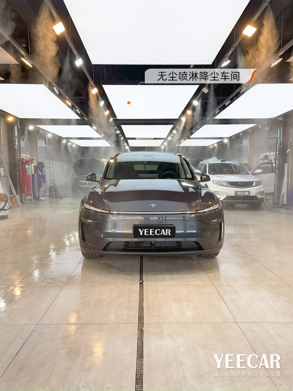 1、恒温恒湿无尘车间:艺卡施工门店车艺尚配备有专业照明系统和大型喷淋除尘设备,以及标准的车间疏水系统,模拟雨天空气湿度,达到理想的贴膜环境湿度,最大限度降低空气中的悬浮颗粒,减少尘点附着,达到无尘贴膜环境,贴膜之前先精洗!