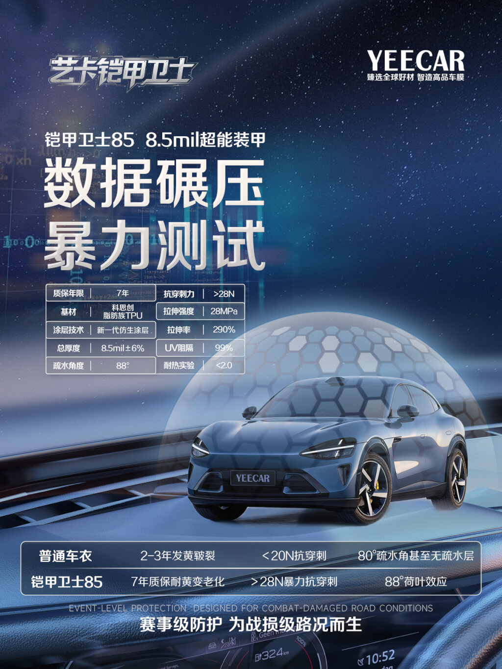 8.5mil超能装甲,进口科思创TPU基材 + 新一代仿生涂层