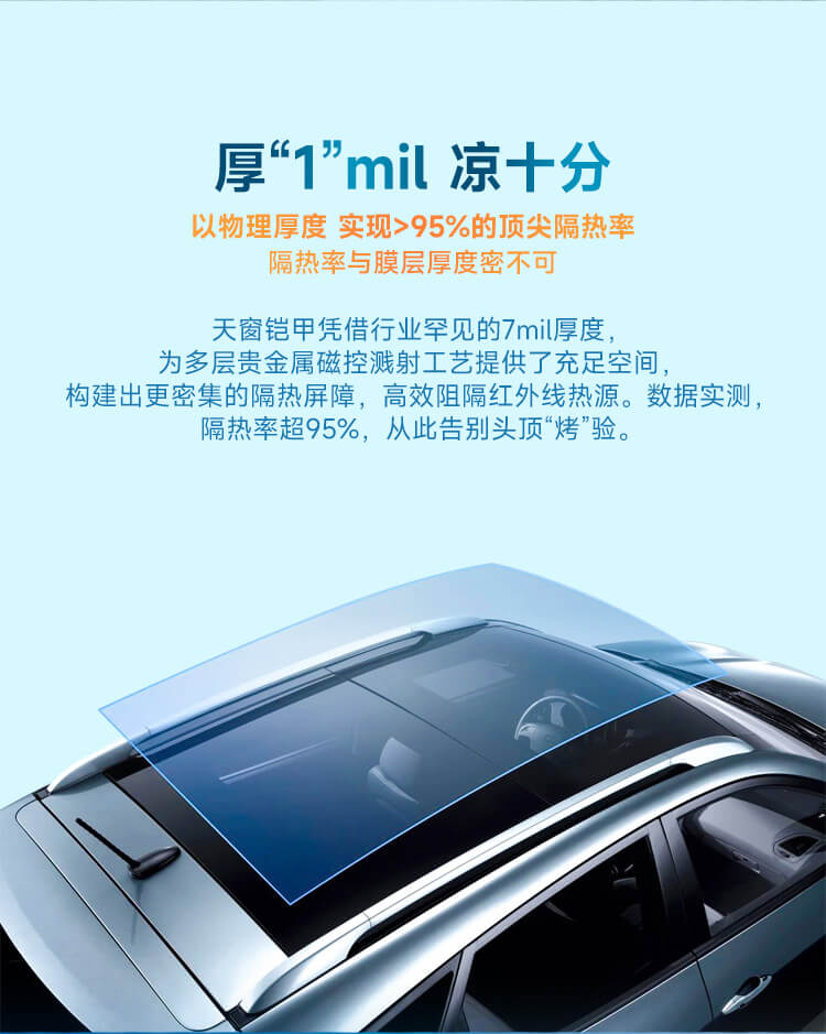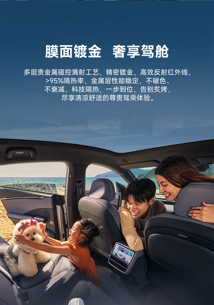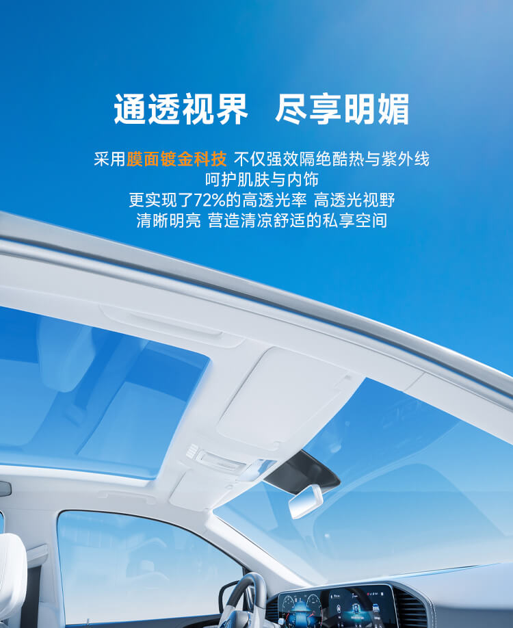 膜面镀金反射隔热,全景天窗防护,拒绝热量穿透
