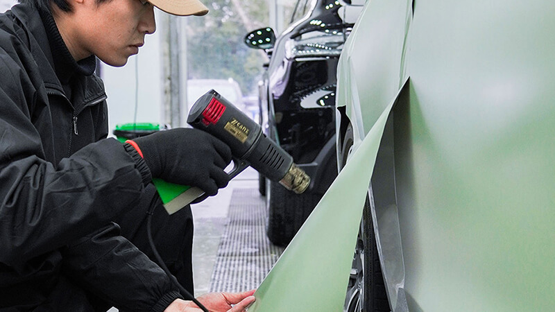 改色膜都是PVC材质比较多,而艺卡改色膜采用的优质的PET材质,这种改色膜贴上后橘皮纹更少,更加接近车漆效果。但施工难度高,价格也贵一些。