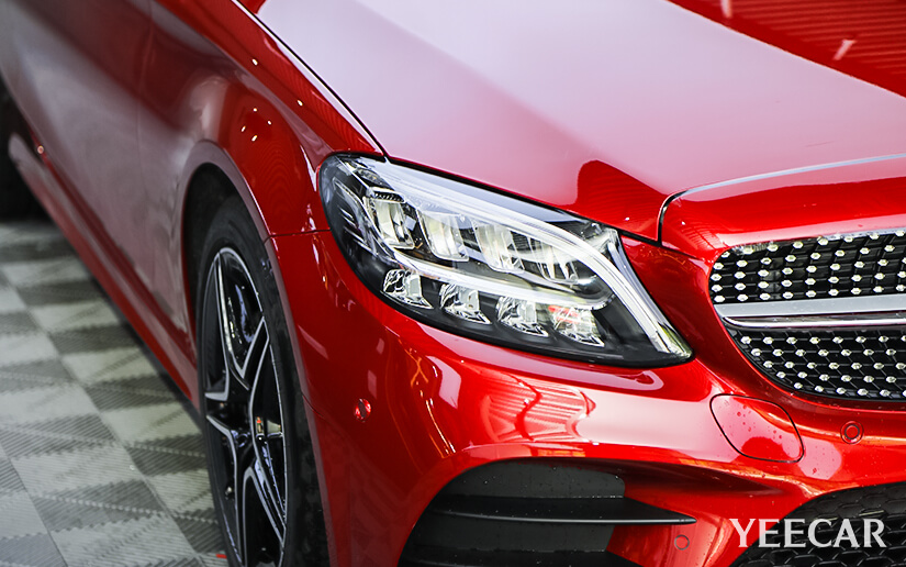 红色奔驰C260全车装贴YEECAR G6隐形车衣,成交价在10800元,赠全车内饰保护膜一套,专车专用,不动刀,不拆件,漆面增亮20%左右,贴完后,整个车看起来美艳的不可方物,下面是施工效果图,敬请赏析: