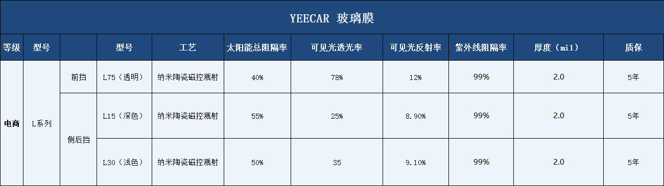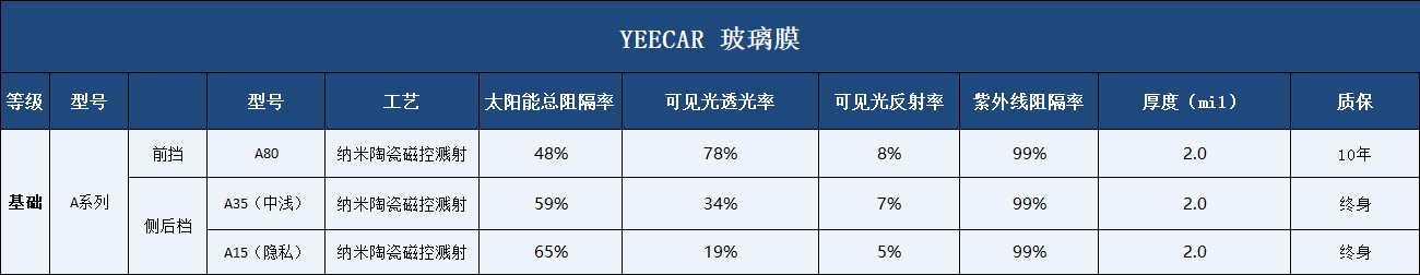艺卡YEECAR陶瓷膜总共有2款,分别是线下款A系列以及电商款L系列,其中A系列是艺卡玻璃膜的明星产品,相对于其他品牌中隔热效果一样的要便宜一些。那么,针对与这两款要怎么选择呢?一起来看看吧