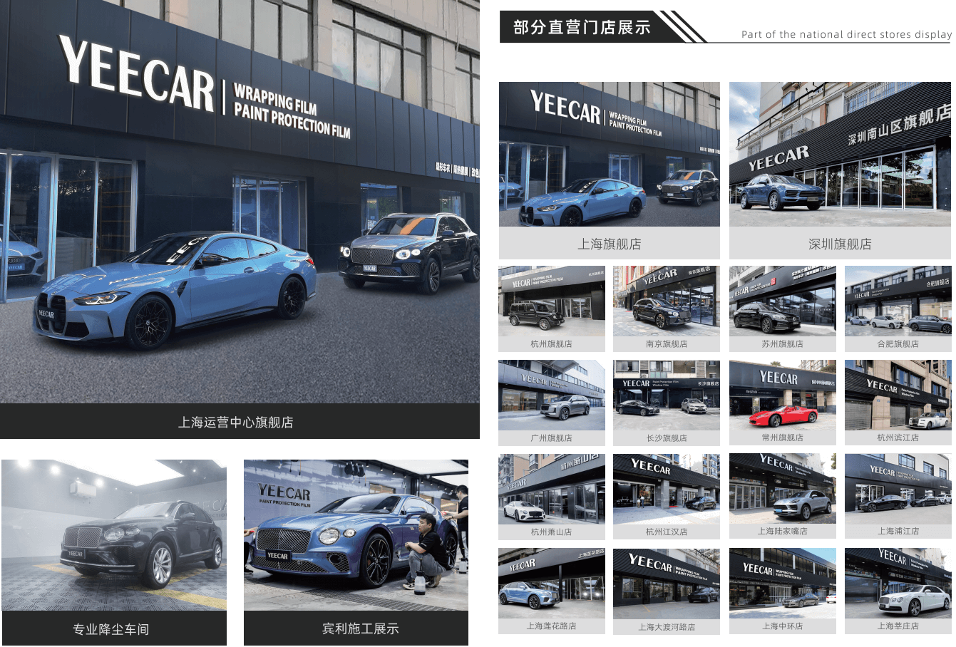 艺卡YEECAR汽车贴膜店在全国各地开设直营门店,连续多年蝉联国内销量榜首,为数十万车主提供了满意的汽车贴膜服务。