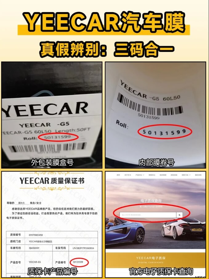 也能分辨YEECAR艺卡汽车膜真假:三码合一!