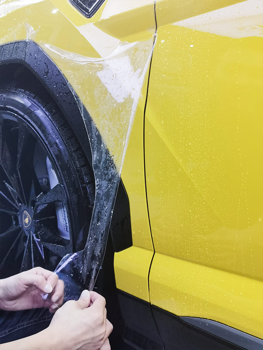 YEECAR艺卡隐形车衣基材主要采用国际顶尖供应商Argotec的高端TPU材质,具备了韧性强、抵御剐蹭能力更强的特点,轻微剐蹭遇热可快速自修复。所以YEECAR艺卡隐形车衣的抗刮耐磨性能比一般车衣更强,即使遇到小刮小蹭也无需到店处理,只用在划伤处泼些热水,或者晒晒太阳就可以自行修复,方便快捷,有效延长隐形车衣的使用周期,为车主提供更有价值的车衣防护。
