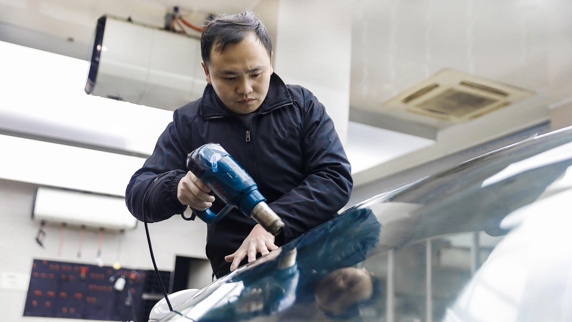 3. 专工专用:YEECAR艺卡贴玻璃膜采用近20种专业施工工具,注重每一个细节,确保施工质量。