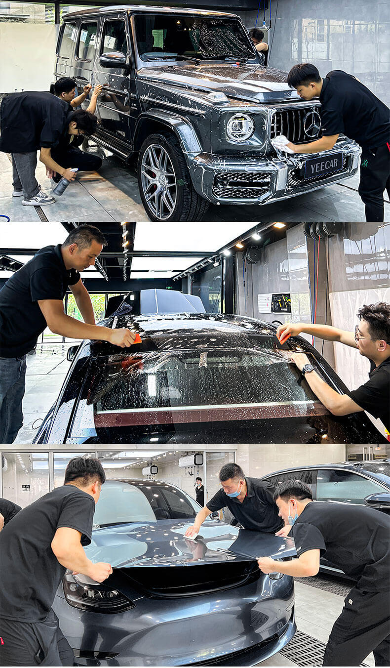 不过YEECAR艺卡门店一直采用多名技师相互合作贴膜,可以有效节省施工时间。可提前告知工作人员车型,让门店提前做好准备,合理安排时间。