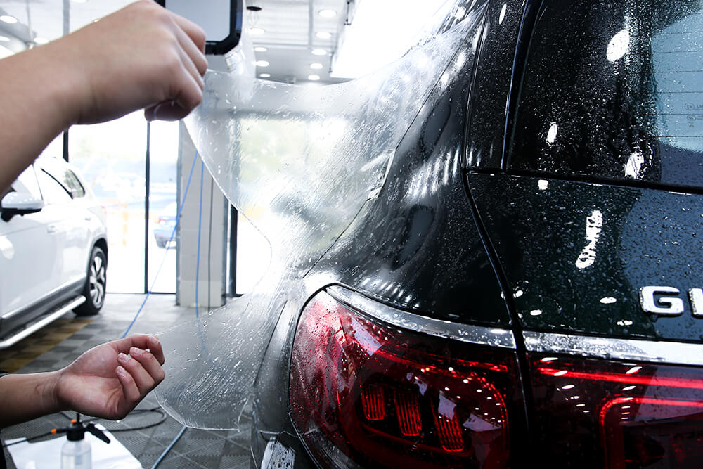 贴膜时间取决于贴膜面积大小,不同车型的贴膜面积不同,施工时间自然不同。比如新能源汽车通常都有大型前档玻璃和超大天窗,这两个部分面积大,弧度也大,施工难度更高,全车贴窗膜的施工时间就会更长;贴车衣时,大型SUV就比普通小轿车用时更长;车型更复杂的奔驰大G即使贴隐形车衣,也需要机器裁膜和人工裁膜双重结合,施工时间自然也会比较长。