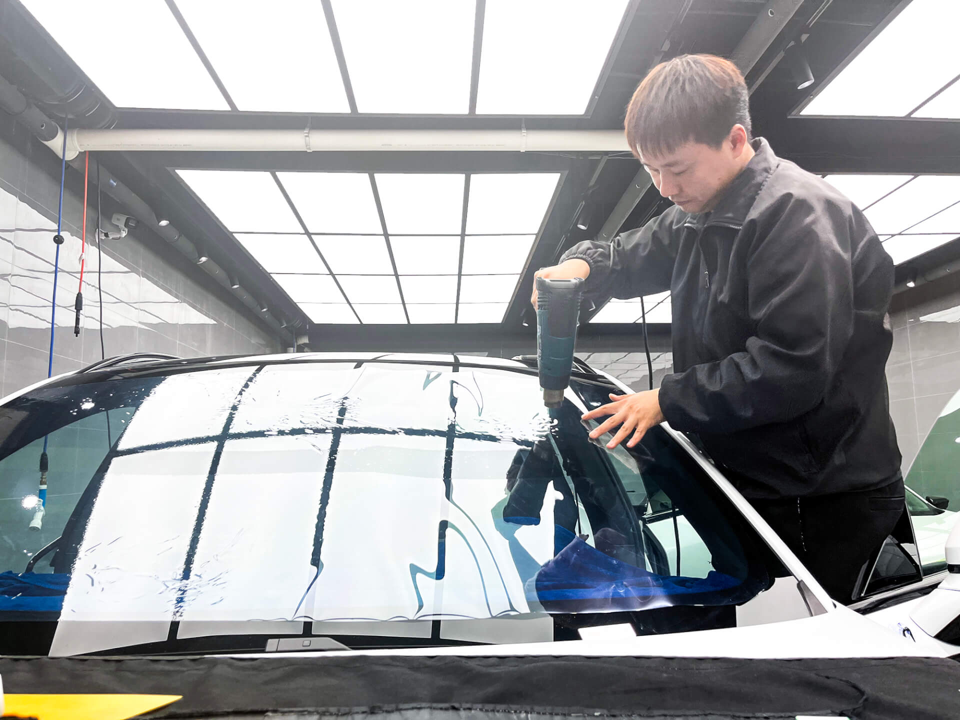 前后挡风玻璃是对贴膜工艺水平的考验,因其弧度大、面积广,给施工贴膜增添不少难度。在贴前后挡风玻璃时,最好全张贴而非裁剪,否则会失去防爆效果,还会影响视觉效果。只有技术高超的贴膜技师才能贴出高品质效果。