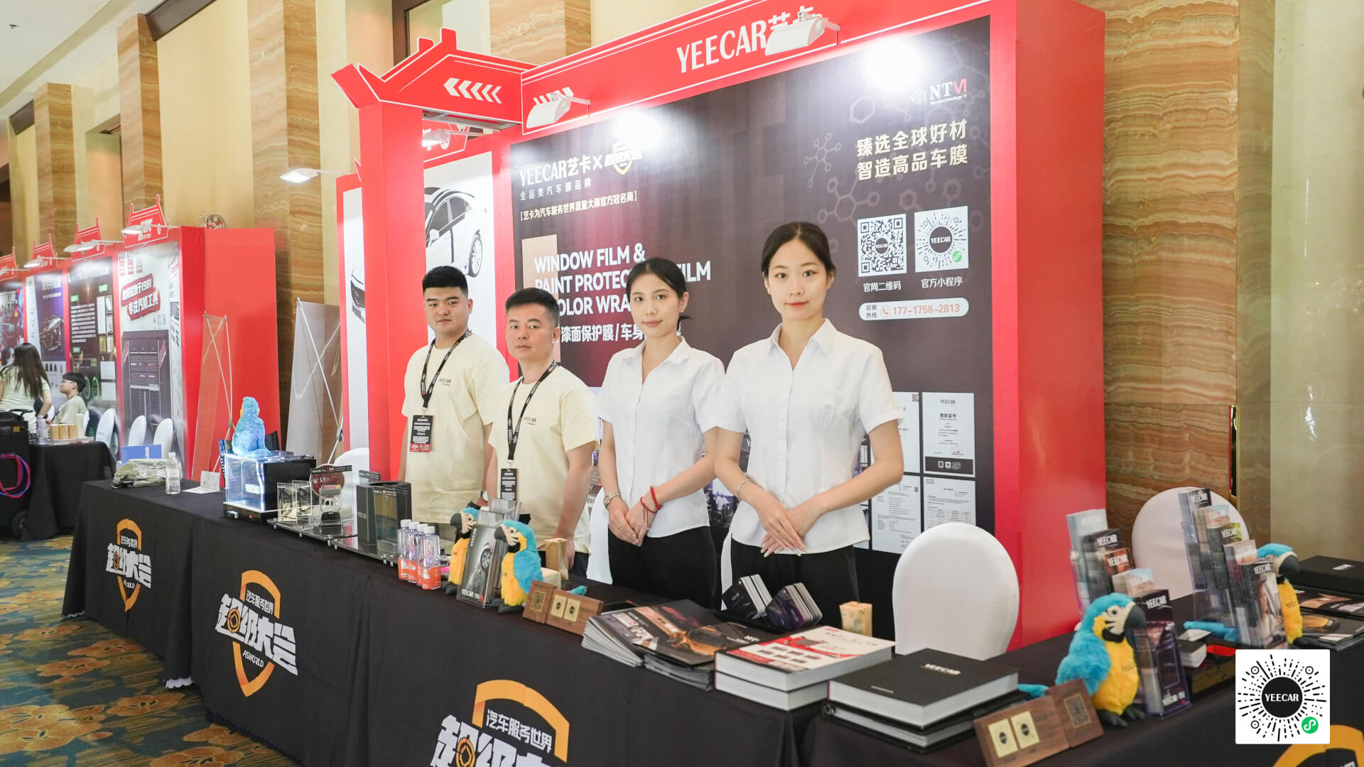此次超级大会期间,YEECAR艺卡团队不仅为大家带来了丰富的市场经验分享,还现场展示多年研发的高性能车膜产品。如G5、G5Plus、G6隐形车衣,采用全球高端Argotec脂肪族TPU基材制造的,具有强效抗刮耐磨防穿刺性能;艺卡窗膜R70采用13层贵金属磁控溅射技术,太阳能总阻隔率可高达61%;还有多达300多种色彩的改色膜,炫酷彩绘改色等等。YEECAR艺卡团队现场对产品做实验演示和讲解,凭借优异的产品性能吸引了众多参会者驻足观看,对艺卡车膜产品的超高品质发出阵阵感叹。