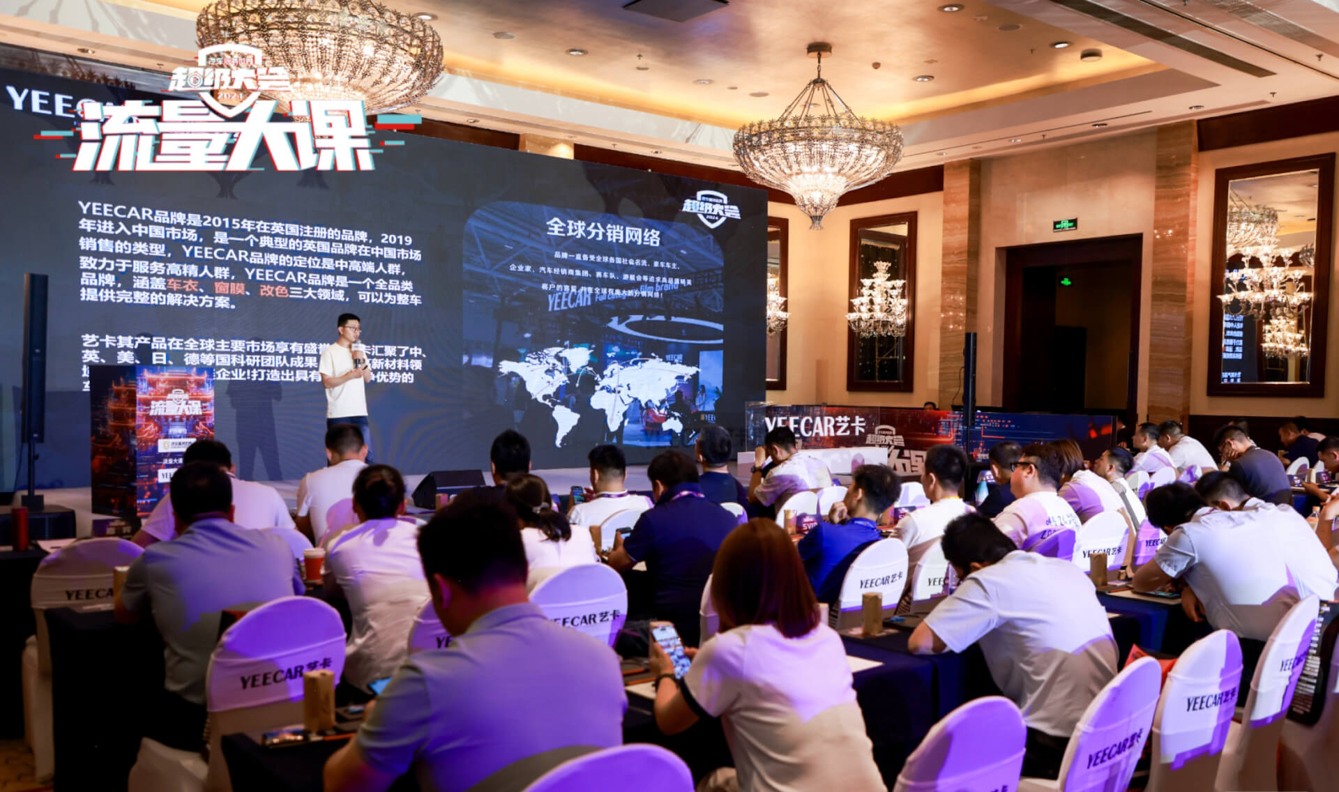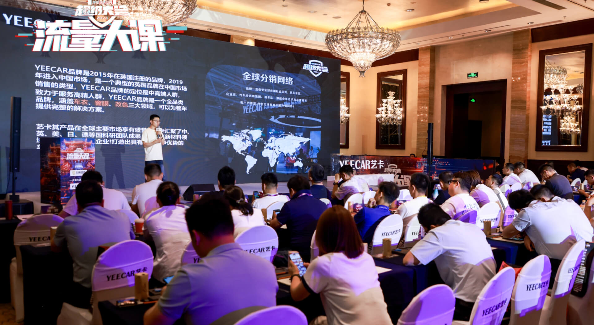 此次大会期间,YEECAR艺卡首次作为冠名商亮相会场,在流量大课上为大家带来品牌专场分享,吸引了众多汽车后市场头部的连锁门店、大型经销服务商、供应链平台、优秀洗美改装店、4S店等高端人才参与,全方位解构当前车膜市场现状,引爆全场,成为此次超级大会中的一大亮点。