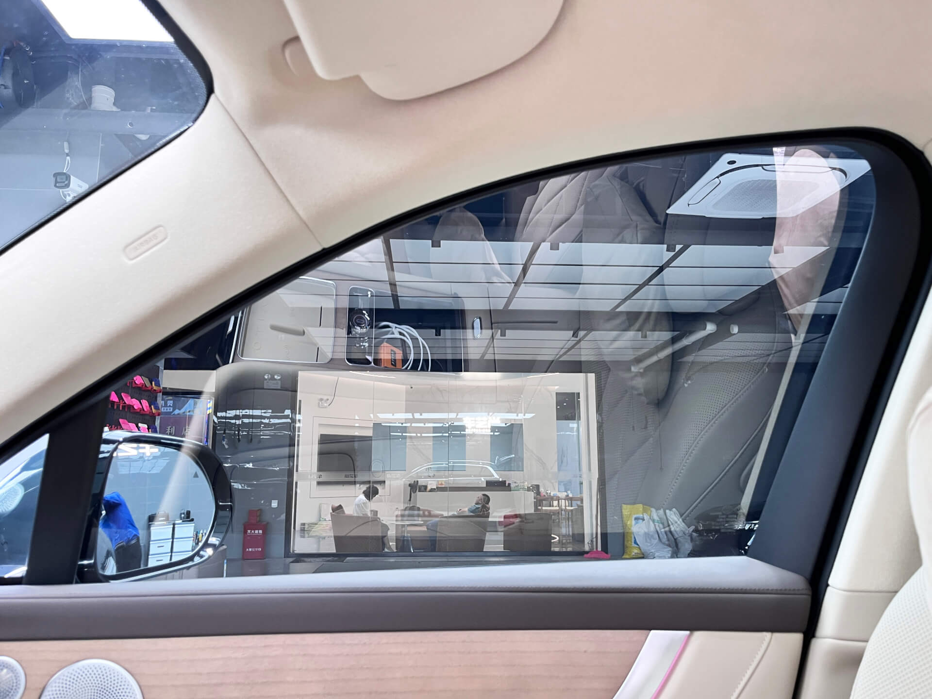 关于天窗玻璃:问界m9的天窗是双层夹层玻璃,虽然隔热性能不强,但因为有遮阳帘,所以贴不贴膜都可以。当然,如果你想要透亮的车顶,有更好的视觉享受效果,贴汽车膜当然是更好的。
