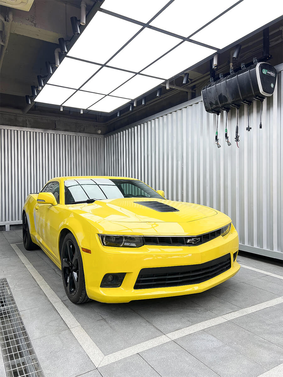 YEECAR艺卡丹东店拥有专业施工车间,配备先进的喷淋系统、降尘雾化装置和恒温车间。明亮而富有柔和光线的射灯和无影顶灯确保了贴膜过程中的无死角照明,帮助技师更准确地施工贴膜。