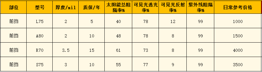 一、市场上汽车前挡贴膜价格