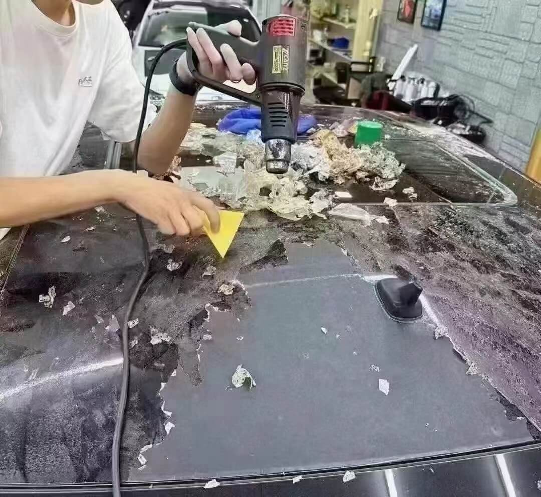 如图所示,为2999元隐形车衣去膜留胶,技师需要一点点的去处粘附漆面的车衣。因为一点点撕膜耗时时间长,占用技师工时,所以一般这种撕膜费用比较贵,需要几百上千元。