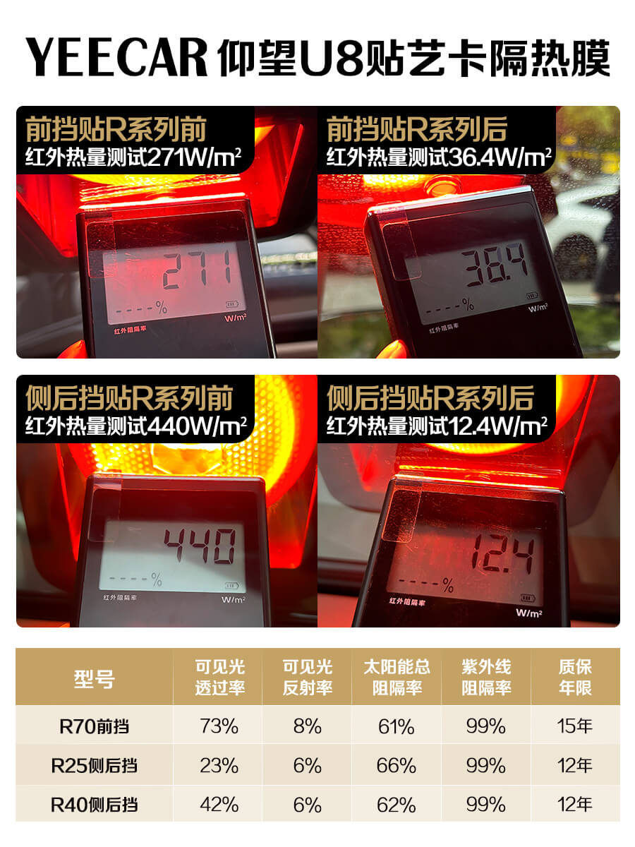 汽车太阳膜的隔热率,即膜的太阳能总阻隔率,主要指太阳膜能够阻挡并反射多少太阳热量,从而减少热量进入车内的比例。这一指标通常用百分比表示,数值越高,隔热效果越好。隔热率由太阳膜所采用的材料、工艺等因素决定。