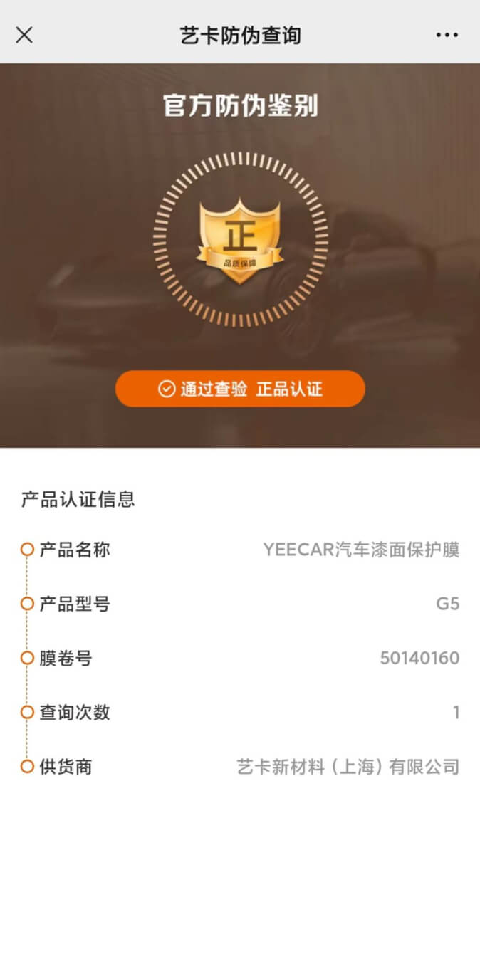 YEECAR艺卡车膜防伪码官方正式上线,汽车膜是否正品一验便知