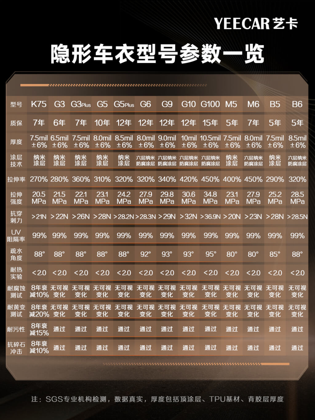 阿古泰克(Argotec)TPU基材在全球享有声誉,具备卓越的抗黄变、抗老化和紫外线防护能力,具有更强的抗刮擦和耐磨性能,是许多大牌进口隐形车衣都选用的高端基材。艺卡车衣采用阿古泰克(Argotec)TPU基材制作,从源头做好品质保障。