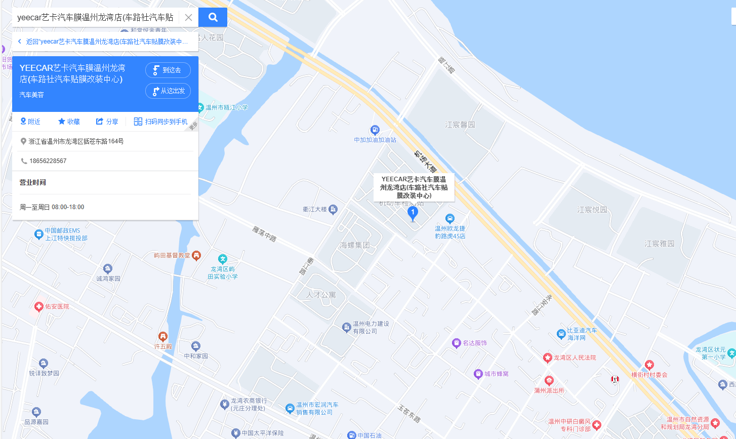 门店名称:YEECAR艺卡汽车膜温州龙湾旗舰店