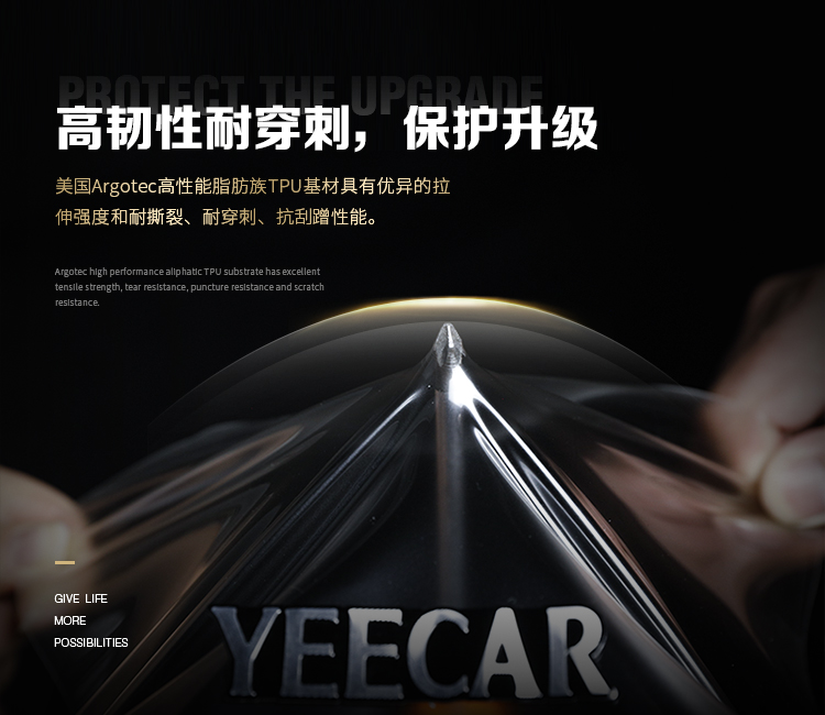 YEECAR是一家定位高品质汽车保护的汽车膜民族品牌,公司以“让每位车主都能享受科技带来的驾乘乐趣”为愿景,甄选进口优质脂肪族TPU基材,立足国内车主的用车环境和使用需求,专注高性价比汽车膜的生产。