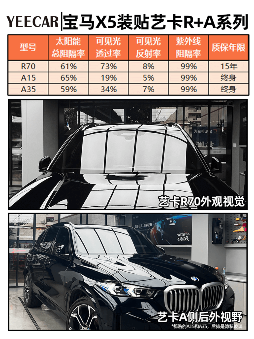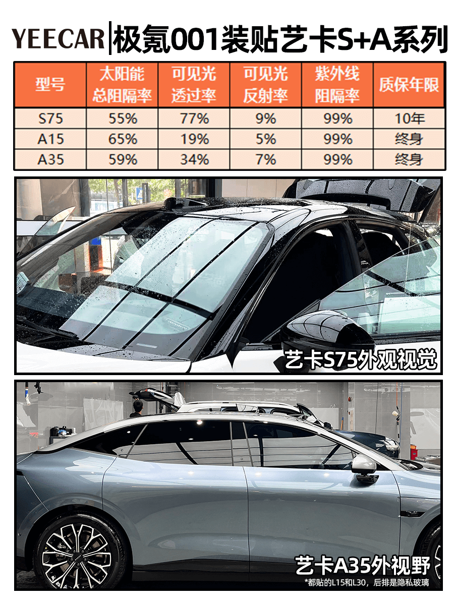 YEECAR艺卡A系列以磁控溅射陶瓷技术著称,不仅不阻隔5G信号,还能提供卓越的视觉清晰度。特别适合玻璃面积宽大的新能源车主,而且价格合理,是一款高性价比之选。